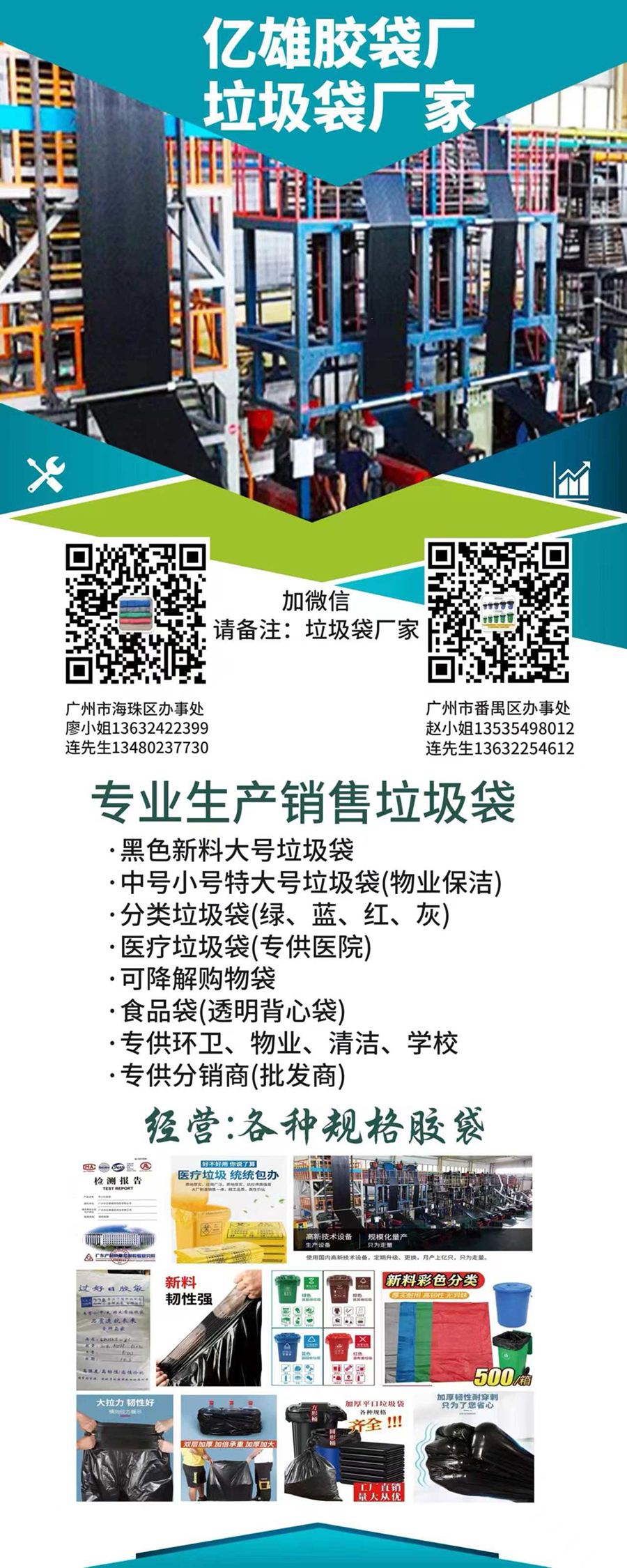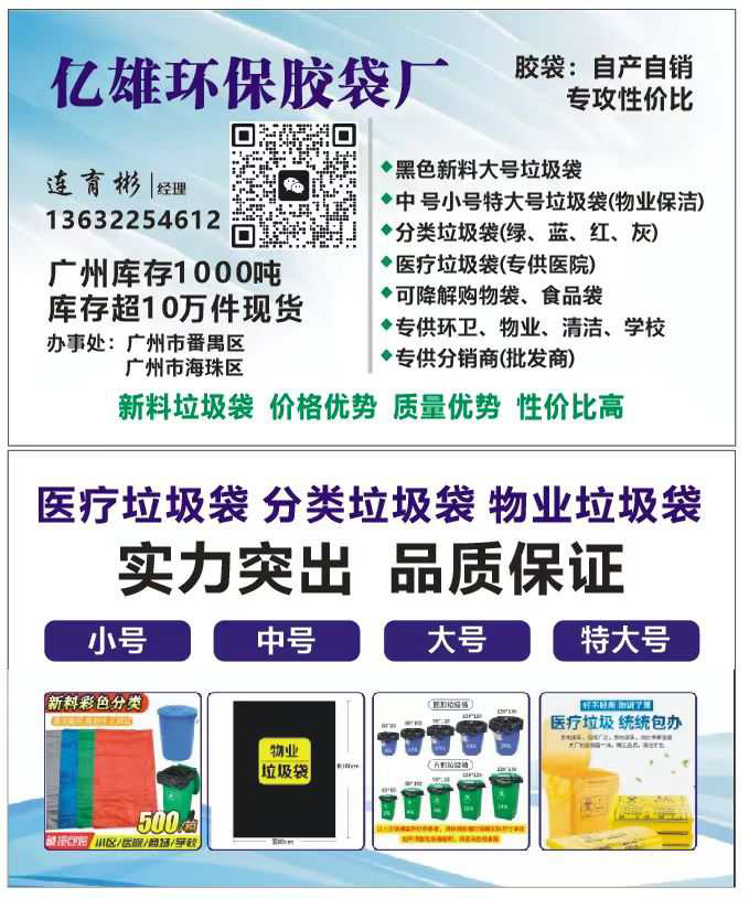 專業生產大號垃圾袋、特大號垃圾袋、中小號平口垃圾袋等